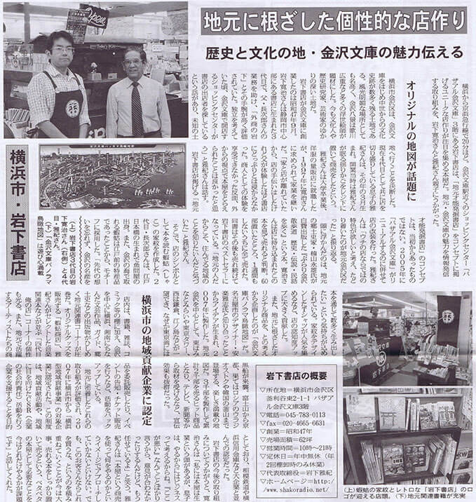 In our store, we are actively carrying books related to our area, Kanazawa Ward in Yokohama City, and neighboring areas advocating our catch phrase “A book store that is discovering local capabilities.” We are also appealing to locals in that we have created our corporate logo with a motif based on the mantis shrimp, a local specialty.